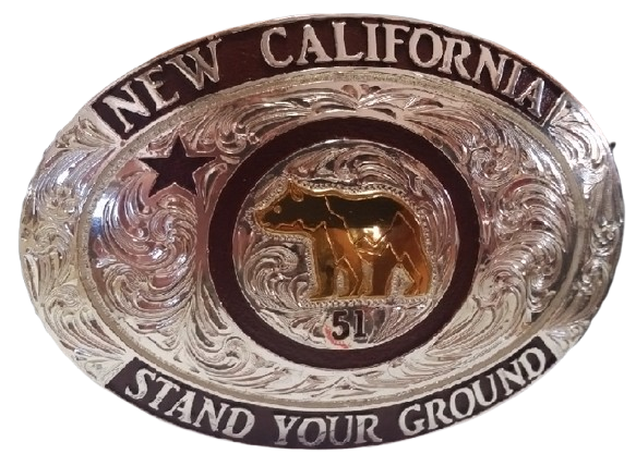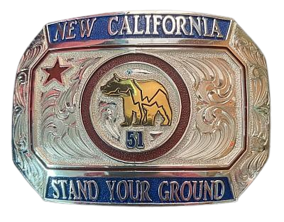 (NOTE New California belt buckles are only available here at Jay Palm's) Forming a new state from a pre-existing state using, Article 4 Section 3 and 4, of the U.S. Constitution, and the Declaration of Independence. Give us liberty! Whenever any Form of Government becomes destructive of these ends, it is the Right of the People to alter or to abolish it, and to institute new Government, laying its foundation on such principles and organizing its powers in such design that is most likely to affect their Safety and Happiness. … when a long train of abuses and acts to seize and hold the people’s power without legal authority and pursuing invariably the same Object that clearly demonstrates a design to reduce them under absolute Despotism, it is their Right, it is their Duty, to throw off such Government, and to provide new Guards for their future security. (Emphasis added.) [U.S. Declaration of Independence, 1776; and, New California State Declaration of Independence, January 15, 2018] |